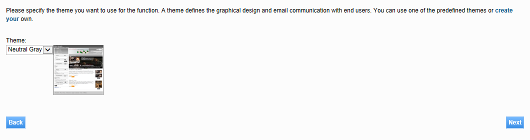 In the third step select the theme you would like to use. If you select the different themes from the drop down box, small previews are shown.