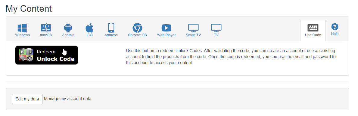 The code can be redeemed online at the My Content page or in most players. During code redemption, each student or user creates their own player account (or uses their existing player account) and can use the content as defined by the license. For example, if the license allows use on 3 devices, each user can sign-in to the player on up to 3 devices.