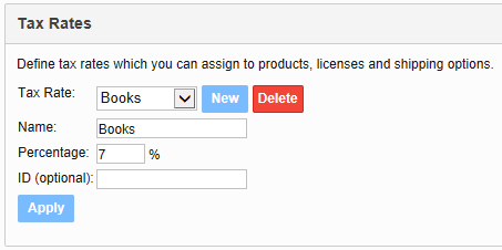 Once you have defined your special (or general) tax rate, you can apply it to your licenses (for digital goods), products (projects), shipping models and subscriptions.